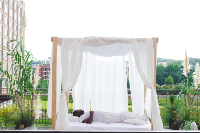 which made me think of public resting events hosted by Tricia Hersey of the Nap Ministry: “We facilitate immersive workshops and curate performance art that examines rest as a radical tool for community healing. We believe rest is a form of resistance and name sleep deprivation as a racial and social justice issue.”